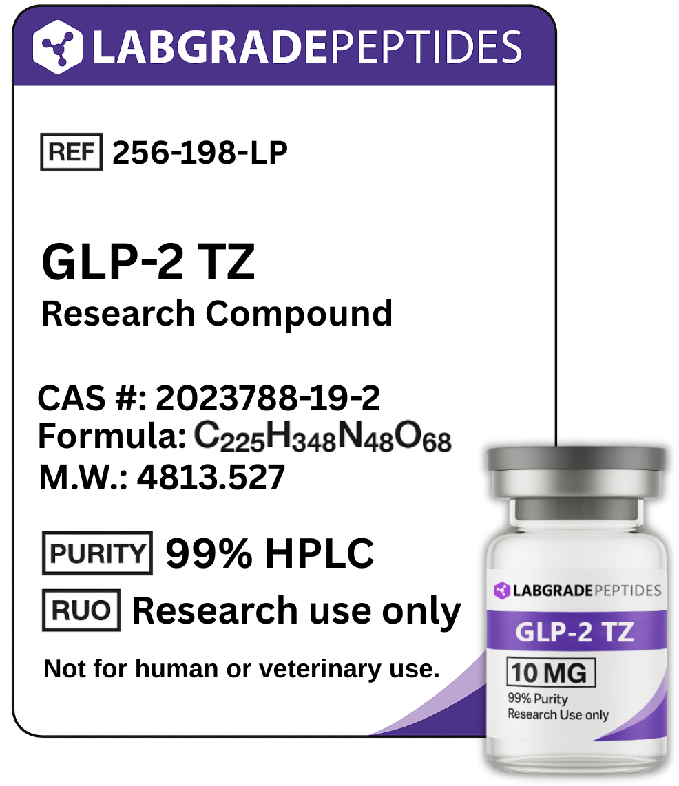 Research Use Only (RUO): All products and information provided on this website are intended solely for laboratory, scientific, and educational research purposes. GLP-2 TZ is not a drug, food, dietary supplement, or medical product. It is not intended for human or animal consumption or use. Products are not intended for injection, ingestion, topical application, or any form of bodily administration. No content on this website constitutes medical or clinical advice. Any non-research use is strictly prohibited.